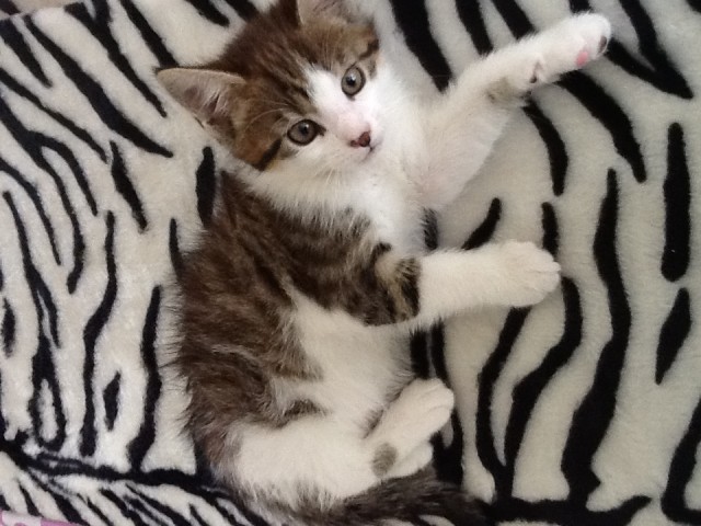 Der Kleine ist Schwarz/ Weiss, getigertund hat ein schwarzes Näschen was ihn interesant macht, wie man auf den Fotos sieht. Sie können die beiden natürlich jederzeit besuchen kommen und bei Abgabe sind sie natürlich auch entwurmt ;-)